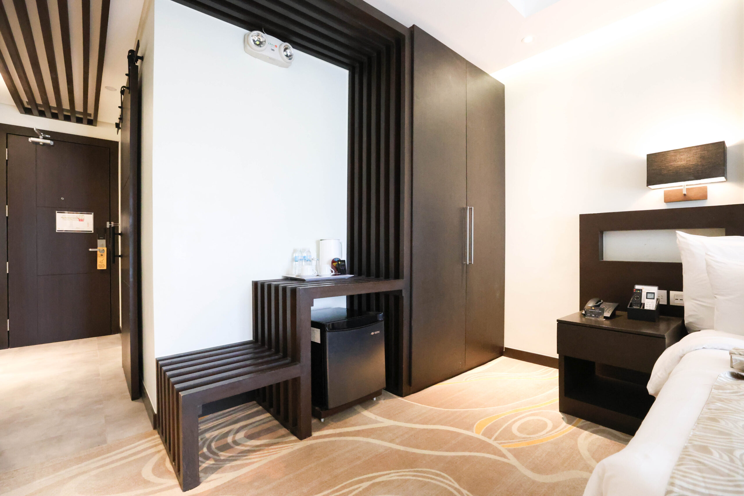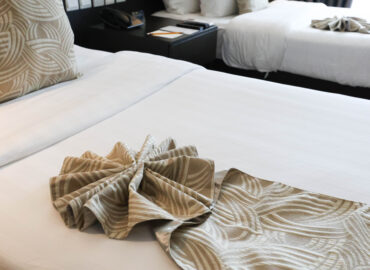 From the comfort of our Deluxe Room, take in the city’s vibrant energy and relax in elegance. Take in the lively atmosphere of city life while you gaze over the busy streets of Legazpi.