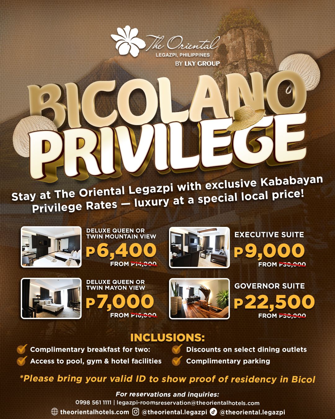 Treat yourself to a well-deserved staycation at The Oriental Legazpi with our exclusive Bicolano Privilege Rates — made just for our kababayans! ![]()