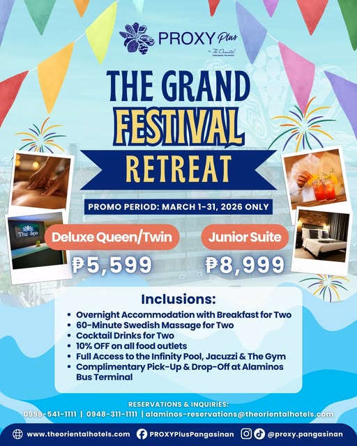 Celebrate the Hundred Islands Festival the PROXY Plus way. Rooms will fill fast — book now and secure your festival stay!